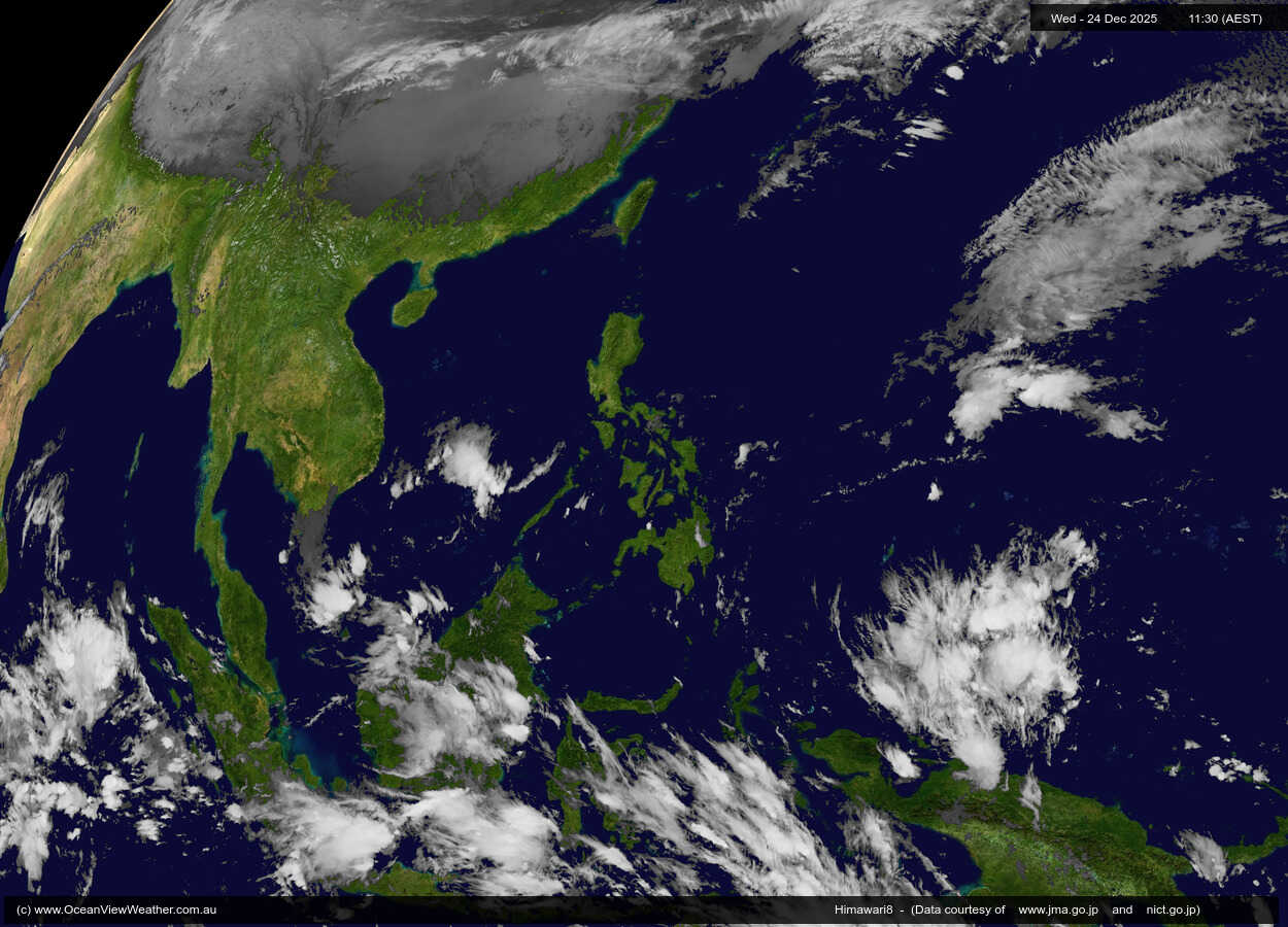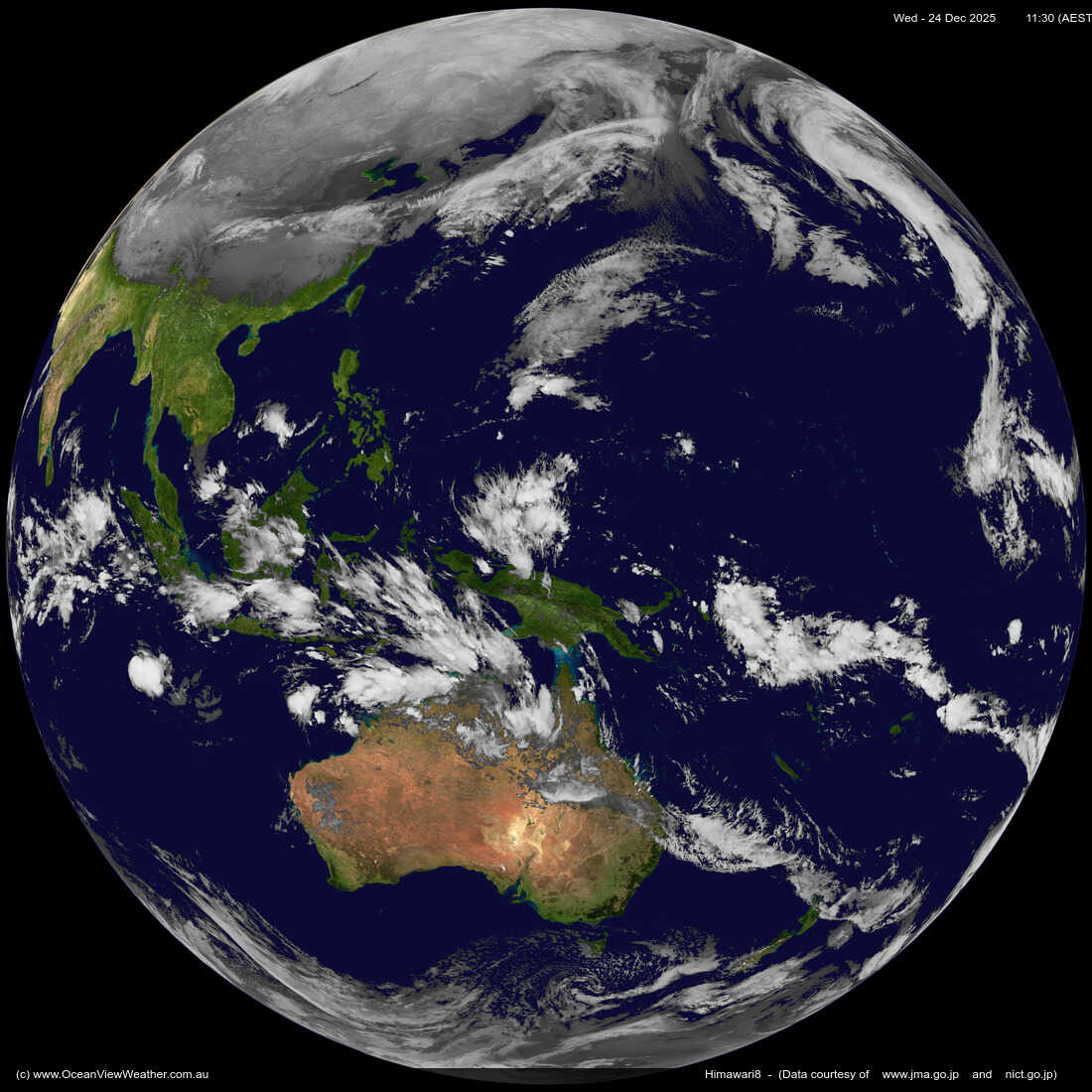 The Himawari Geostationary Satellites are owned by the Japan Meteorological Agency (JMA) and OceanViewWeather processes these images every 30 minutes with data courtesy of nict.go.jp. Click on an image below to view the last 24 hour images.